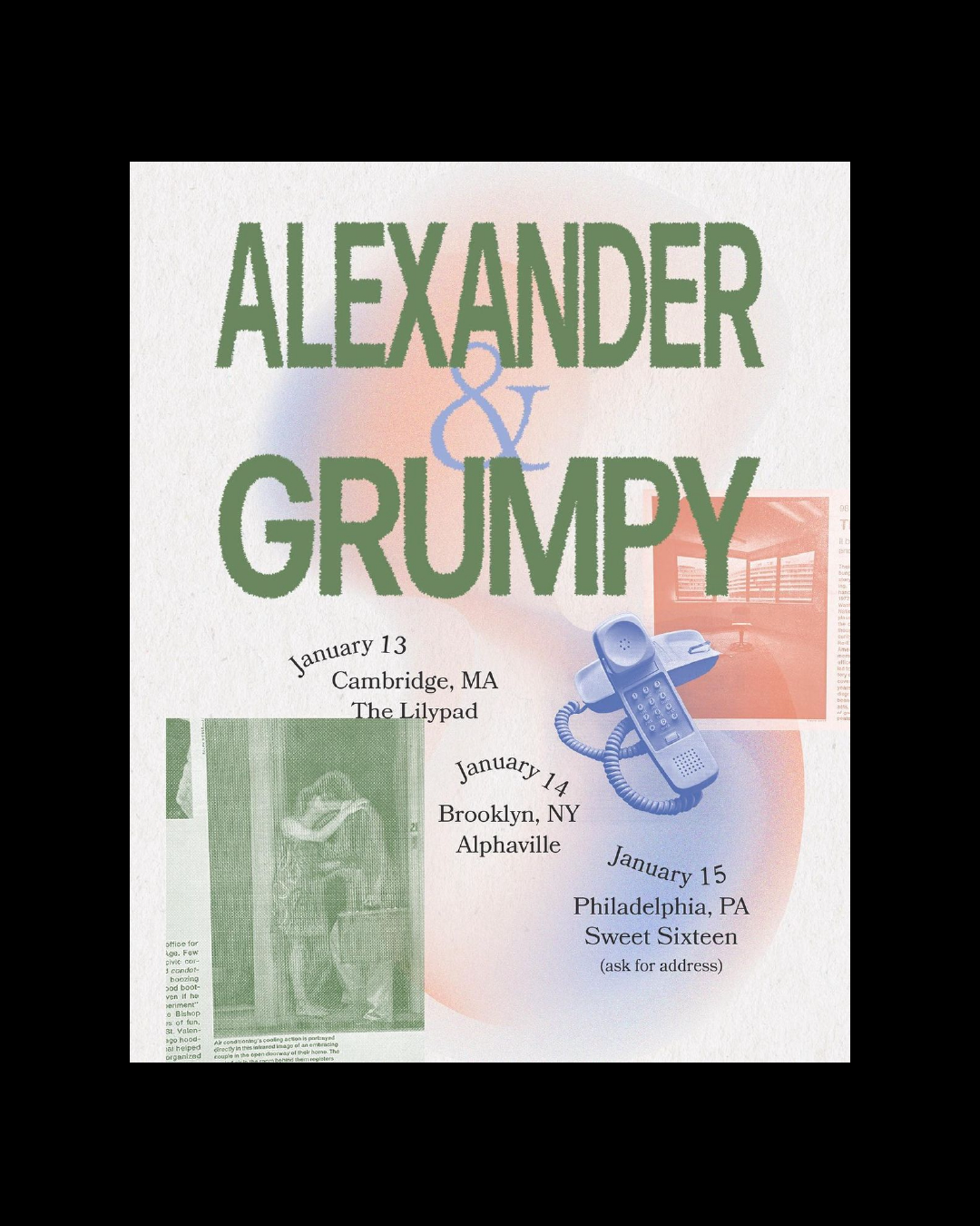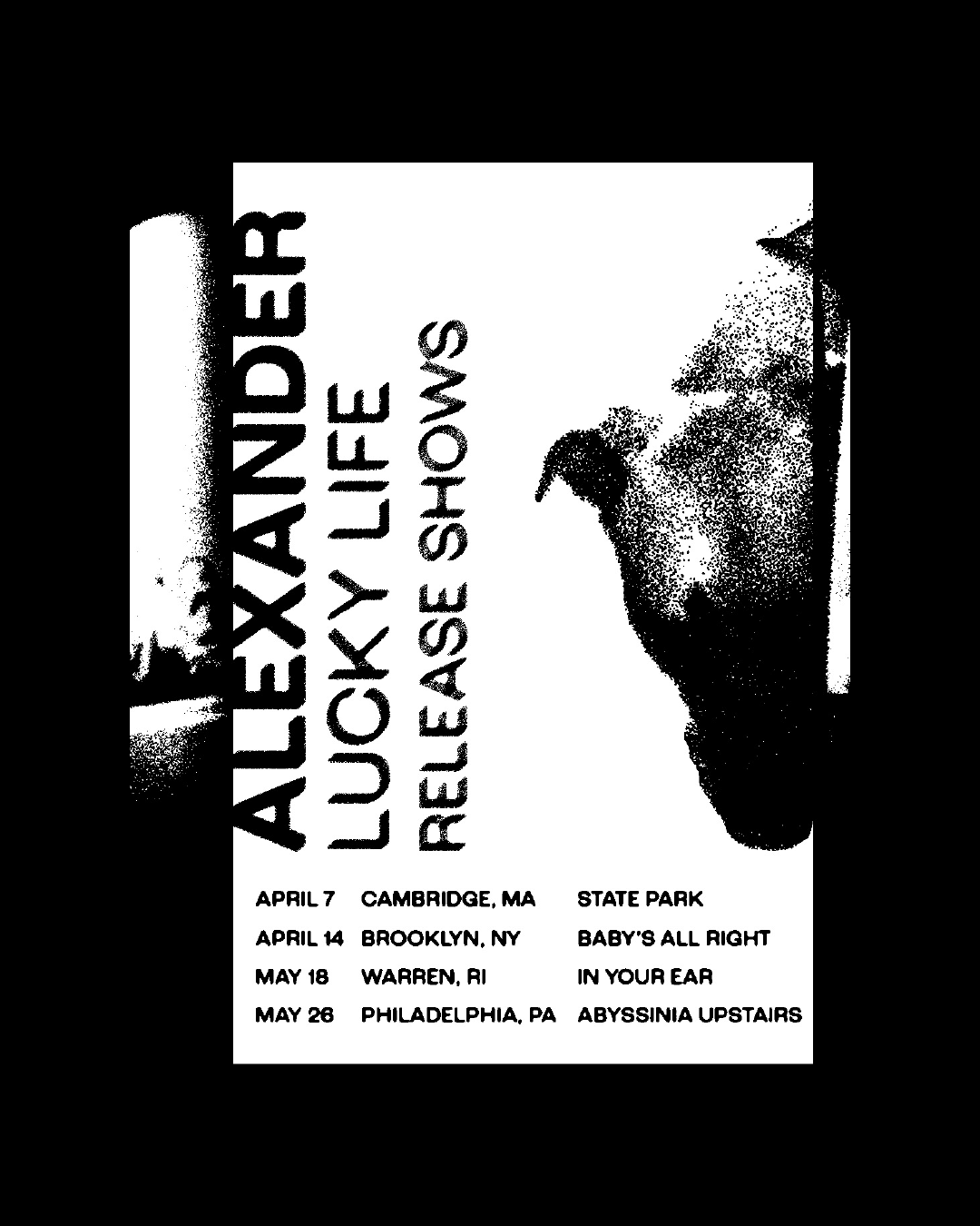 Posters made for local Boston artist Alexander from 2020–2025, shared across social media to promote concerts and tours. A passion/side project and an exercise in type experimentation.