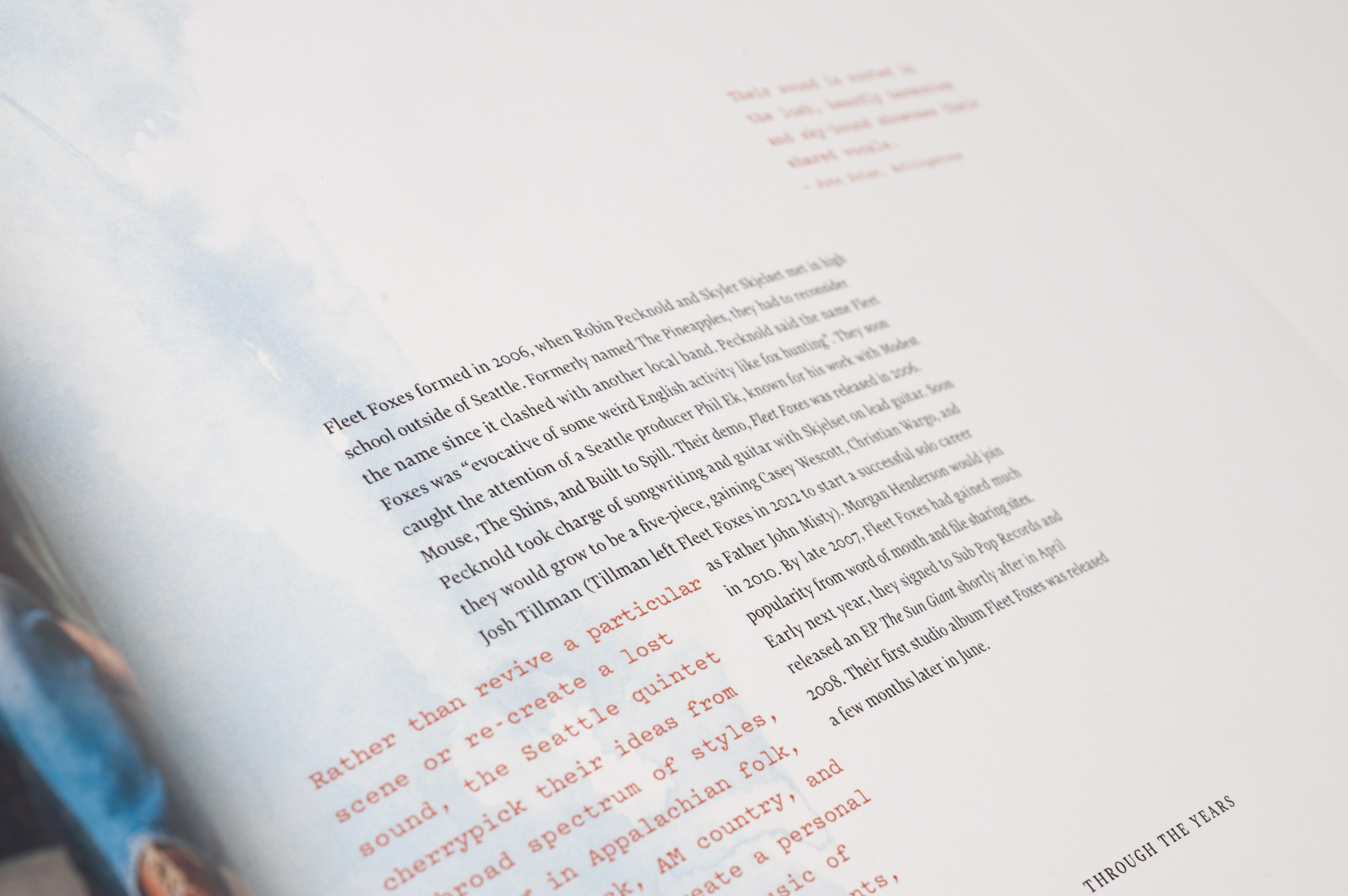 Three album box set for the band Fleet Foxes featuring box design, vinyl albums, catalogue, and labels. The challenge of this project was to capture the essence of the band's music through design and packaging.